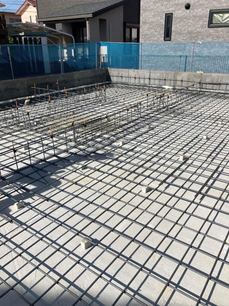 入社してはじめての基礎工事で配筋の配置確認に行きました。